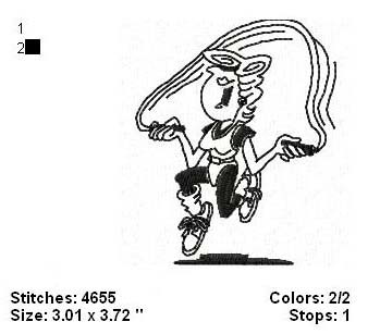 Exercise Series II - Jump Rope Each design available in your choice of 4 x 4 or 5 x 7 hoops. email info@wendystreasures.com with questions. |